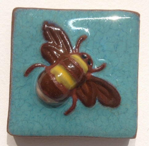 Ann Mari Hopkins - Bumble Bee ceramic tile, approximately 5.5 x 5.5 cm