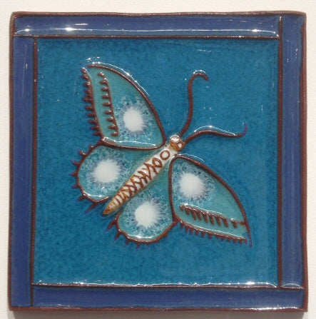 Ann Mari Hopkins - Butterfly ceramic tile, approximately 14 x14cm