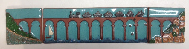 Ann Mari Hopkins - Calstock viaduct 3 ceramic tiles, total size approximately 10 x 40cm