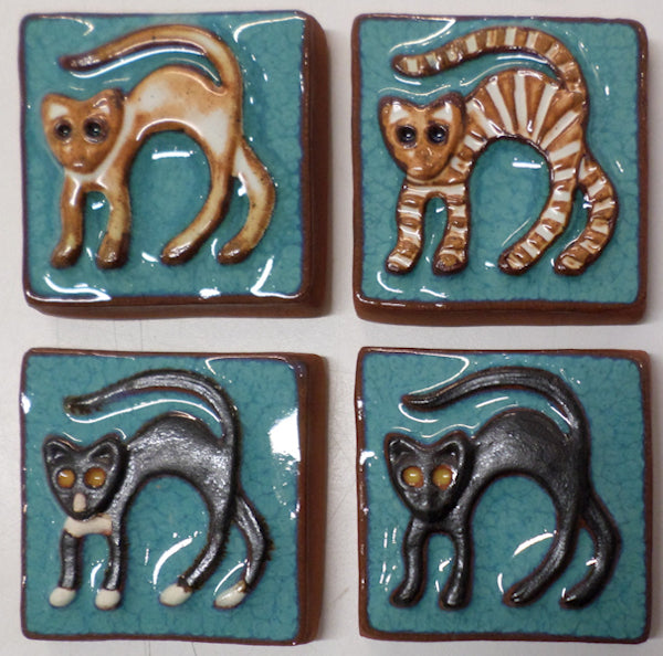 Ann Mari Hopkins - Cats ceramic tile 5.5 x 5.5cm.