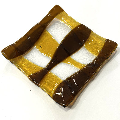 Coloured shallow Glass Dish approximately 21cm x 21cm