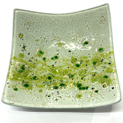 A designer glass bowl by renowned glass artist 18cm x 18cm