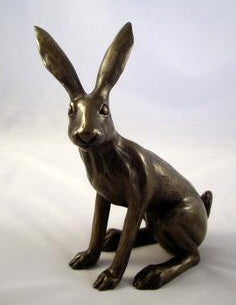 Bronze Resin Hare Sculpture by artist Joanna Martins, measuring 20cm to top of ears, and weighing approximately 650gm