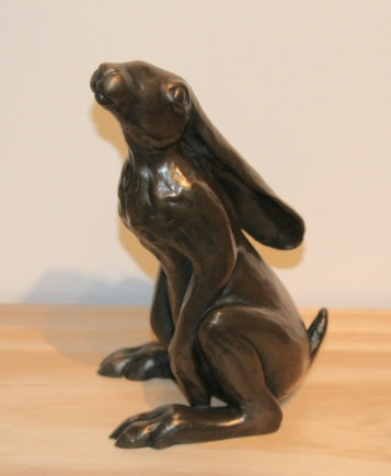 Bronze Resin Hare Sculpture by artist Joanna Martins, measuring 20cm to top of head and weighing approximately900 gm