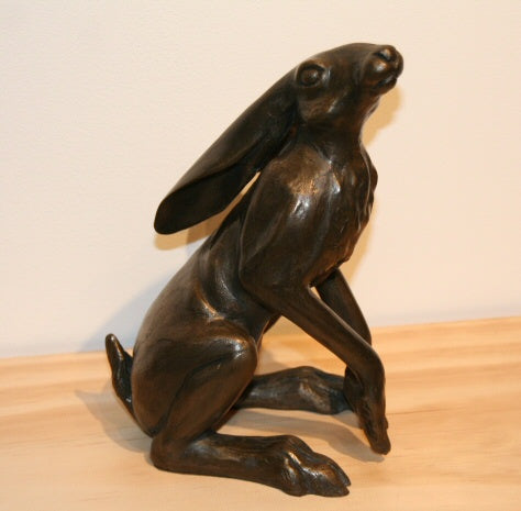 Bronze Resin Hare Sculpture by artist Joanna Martins, measuring 18cm to top of head, and weighing approximately 620gm