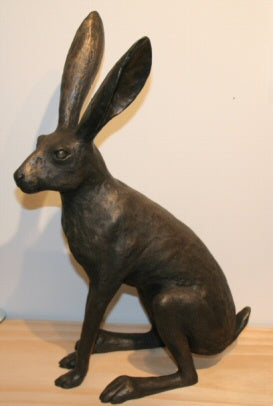 Bronze Resin Hare Sculpture by artist Joanna Martins, measuring 45cm to top of ears, and weighing approximately 5kg.