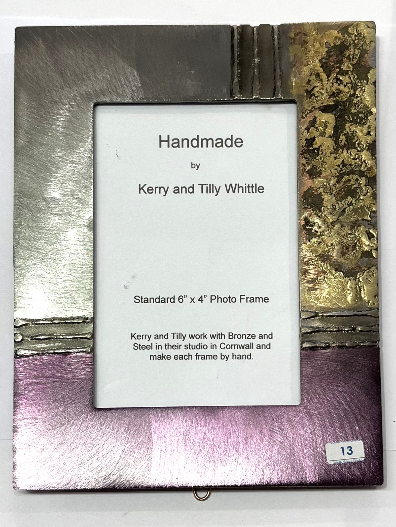 Handmade By Kerry & Tilly Whittle, from steel and brass. Can be used either as a portrait or landscape desk picture frame, or hung on a wall.